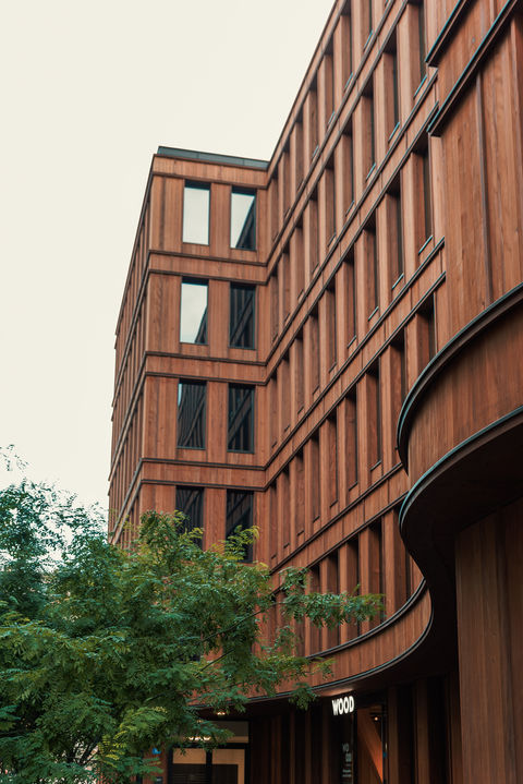 Das Wood - Coffee & Kitchen beeindruckt durch seine einzigartige Architektur und sein innovatives Innendesign. Das Gebäude wurde von Diener & Diener Architekten in Basel entworfen und besteht aus einer beeindruckenden Holzkonstruktion.